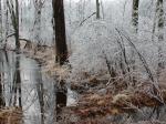 At any rate, yesterday I had such a great hour or so walking in the woods and taking pictures of another "silver lining," God's majestic landscape and thought I share some of my favorites with you, especially you southerners and west coaster (oh yeah and our Hawaiian friends too ). Notice the thickness of ice, approximately 3/4 inch.