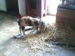 Um brought in some straw for the guinea pigs, Augy pig thought it was for him...August Ronan McPhate.