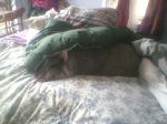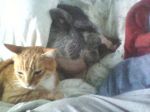 Prudi my potted pig always sleeps with me now, under the covers of course. Be nice in winter. She is so soft and warm. Glory loves Prudie, if she things pru is in danger she starts freaking, running all over hollering. She leans way down to Pru and rubs her face on her. Glory also kisses me now and rubs on me. talks to me all the time. I grab her tail and won't let go to play with her.
