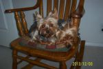 She sits on our laps, gives us loving kisses, plays each night and keeps us two older folks active and busy tending to her needs. We take walks we wouldn't normally to tend to her needs. We play catch in the living room with her, each of us down on the living room carpet and she bounces and barks (laughs) and prances and dances. She's our doll baby for sure. She sleeps with my husband and keeps him warm and loved. I dare say should we ever loose her since she filled that void I fear since she helped take away the grief and loss of his father, that I fear we would have to get the husband a person to fill the loss. (joking here).