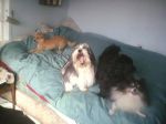 Have my little dog Peppy with me. He managed to knock my 3 inch nails over...ggggaaaawwwwwd.Hey I got my guest room all clean got oh 300 pounds or so of dog food in there. shut the door. soooonice. this morn am in the bathroom.. I hear this crunch crunch. PRUDIE!! POTTED PIG!!!! she got door open dumped over the 50pound sack. so i got her out and shut the freaking door...