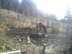 Had to come down and get my hoe and rake...got the pieces of wood all in small piles. Old stuff they threw around. ready to burn. took stuff off windows, plastic etc from last snowy winter when I was desperately trying to seal up my bunkhouse for Glory and Augie. (c: I have plywood to cut now to cover them. whew.