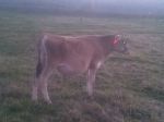 I put an ad on CL for a pet bovine. I pictured an old dairy cow. This gal answers my ad. My dream is a Jersey mini Steer. She offers me a Jersey mini steer, seven mo. old. A friend wants to get it for me.