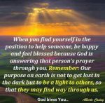 I definitely have been on the helped side, the car I drive was given to me at a very low point in my life. I like thinking of myself as God's light sent to someone in need! Sometimes its just a smile someone needs.